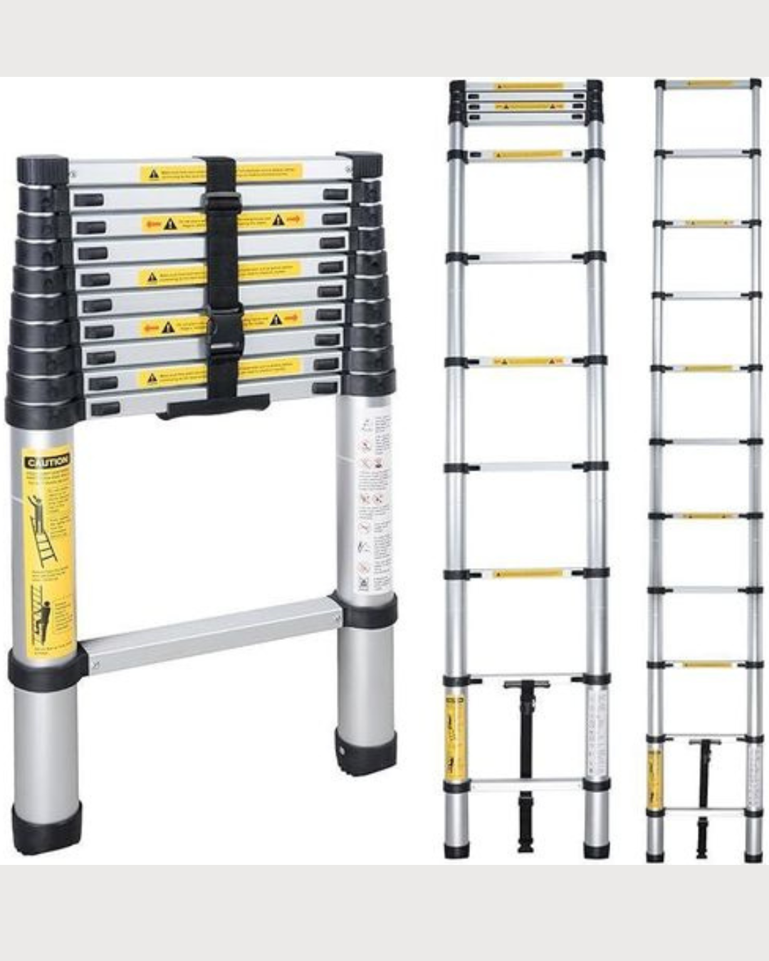 Traditional ladders can be bulky and difficult to store. This telescopic ladder solves that problem with its collapsible design. When fully retracted, it becomes compact enough to fit in car trunks, closets, storage rooms, or work vans.